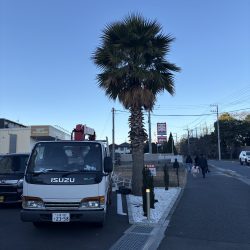 千葉県柏の葉のマンションに植栽してあるヤシの剪定を行いました。 高木のため、車両を使用しての作業となります。 真冬ですが、霜の被害も少なく葉が緑色のため良い状態で作業ができました。