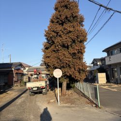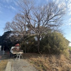 取手市内のお宅で、高木ケヤキの枝降ろし作業を実施しました。 落ち葉が酷く、枝降ろし作業をご希望していたため、約4m程枝を降ろしました。 高木でしたが車両が使用できたため、安全に作業を実施することができました。