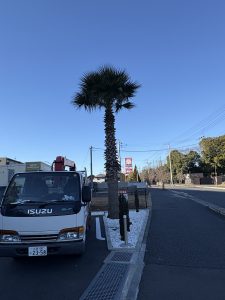 ヤシの剪定 投稿日: 2026022620260226 投稿者: 秀庭園の中の人 千葉県柏の葉のマンションに植栽してあるヤシの剪定を行いました。 高木のため、車両を使用しての作業となります。 真冬ですが、霜の被害も少なく葉が緑色のため良い状態で作業ができました。